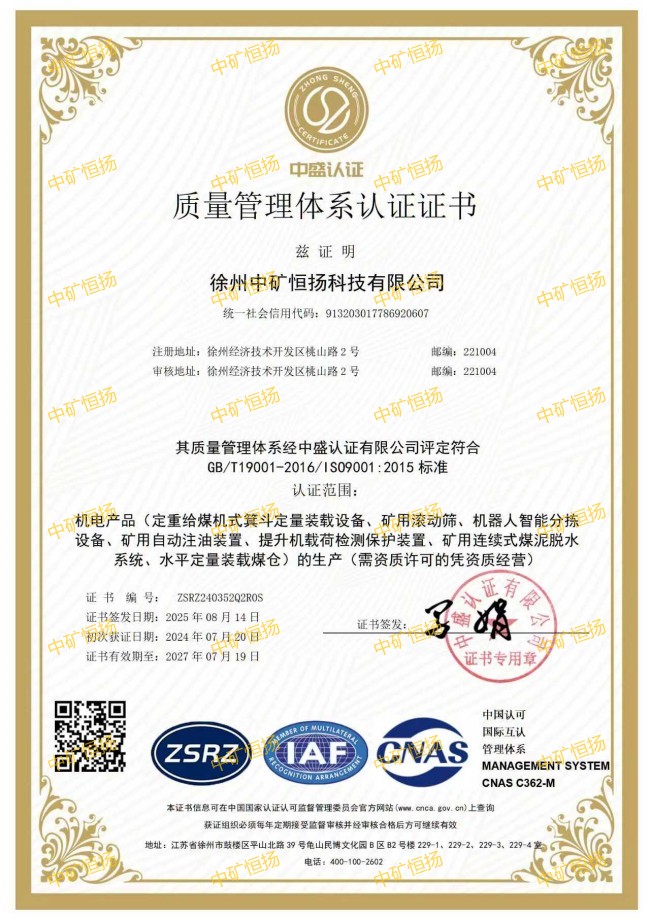 ISO质量管理体系认证证书